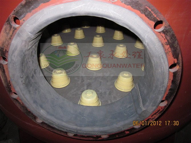 活性炭凈化過濾器罐體內(nèi)部采用多孔板ABS濾水帽布水