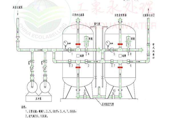 活性炭過濾器反洗操作指示圖: